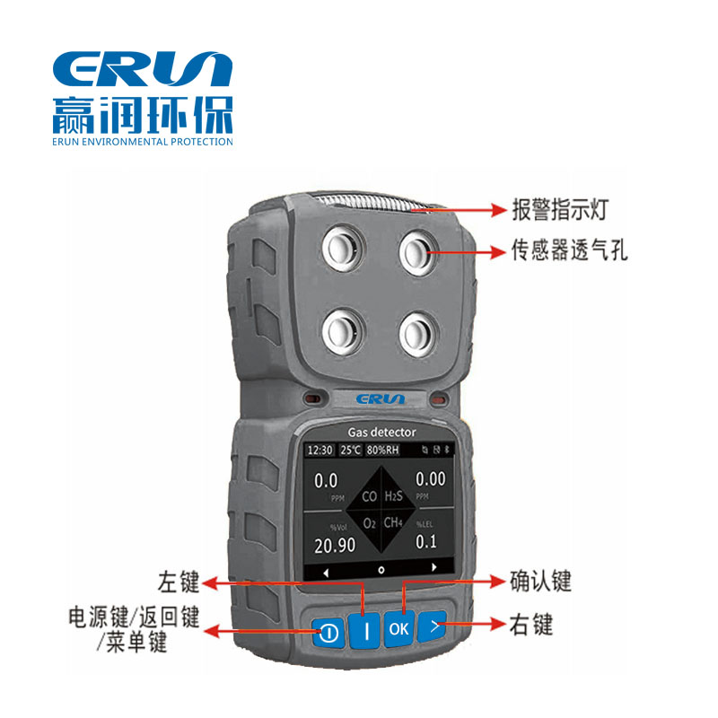 手持式泵吸型氧氣O2氣體報警儀ERUN-PG71S4-O2