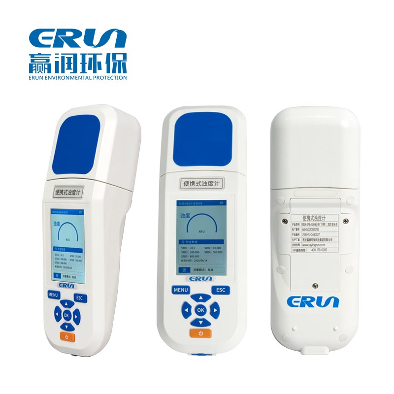 贏潤集團(tuán)研發(fā)生產(chǎn)的ERUN-SP5-B6手持式觸屏水質(zhì)濁度測定儀采用先進(jìn)的光學(xué)系統(tǒng),向樣品發(fā)射一束光,隨后內(nèi)置檢測器對樣品中因濁度而產(chǎn)生的散射光強(qiáng)度進(jìn)行測量。該散射光與入射光呈90°夾角,散射光強(qiáng)度與水樣中的濁度濃度成正比,從而能夠準(zhǔn)確測量出樣品中的濁度含量。ERUN-SP5-B6便攜式水樣渾濁度檢測儀器的量程范圍為0~1000 NTU,分辨率可達(dá)0.001-0.1 NTU,重復(fù)性≤2%,示值誤差為±5%或±0.1 NTU(取最大值),確保了測量結(jié)果的準(zhǔn)確性和可靠性。ERUN-SP5-B6觸摸屏水質(zhì)NTU