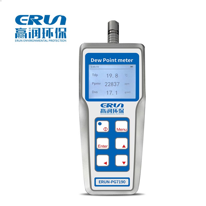 ERUN-PG7190便攜式六氟化硫SF6濕度水分露點(diǎn)分析儀主要用于檢測高壓變壓器、高壓開關(guān)柜、高壓斷路器等電力設(shè)備以及化學(xué)氣相沉積室的清洗劑和等離子蝕刻劑等電子工業(yè)中的六氟化硫SF6中的微量水分以及露點(diǎn)溫度值。手持式SF6濕度水分儀采用熱固聚合物高分子敏感電容檢測原理,能通過自動化軟件程序自動計算顯示出六氟化硫的水分含量和露點(diǎn)溫度等參數(shù),便攜式六氟化硫露點(diǎn)分析儀可用于氟與硫直接反應(yīng)并經(jīng)過精制的工業(yè)六氟化硫中濕度水分露點(diǎn)溫度的檢測。