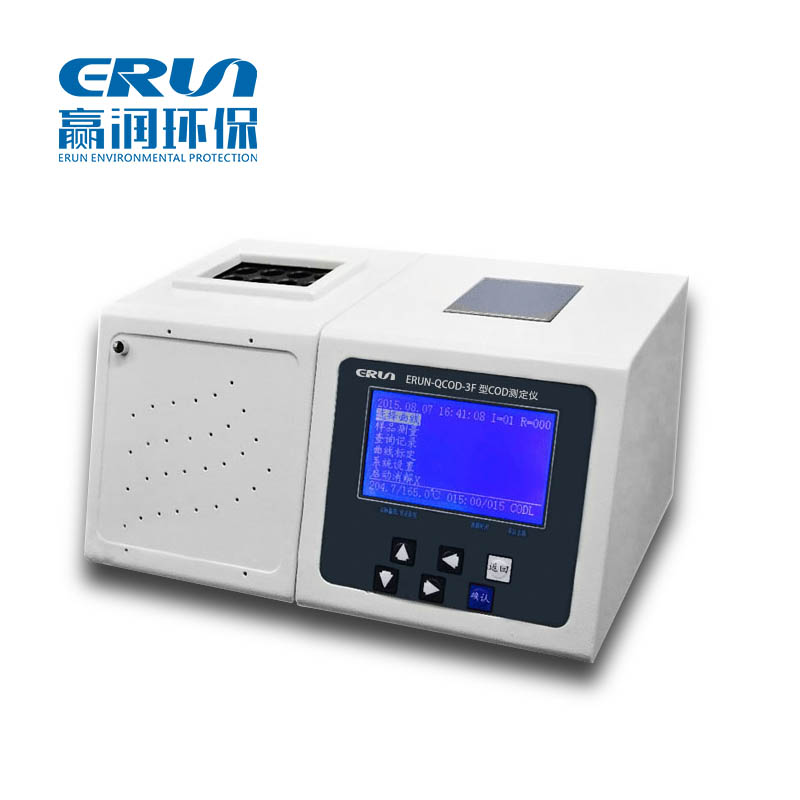 臺式水質(zhì)化學需氧量COD測定儀ERUN-ST-COD3F是利用密封催化消解,然后進行比色法測量。儀器采用先進的冷光源、窄帶干涉技術(shù)及微電腦自動處理數(shù)據(jù),直接顯示樣品的COD(mg/L)值,廣泛適用于環(huán)境監(jiān)測、污水處理及大專院校、科研單位等部門。