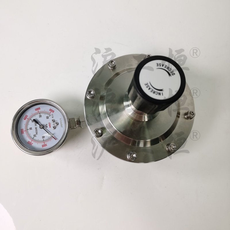 背壓閥的額定壓力可調(diào)節(jié),一般通過調(diào)節(jié)彈簧上端的頂桿,從而調(diào)節(jié)彈簧的長度來實(shí)現(xiàn)。流體從背壓閥進(jìn)口進(jìn)入,被膜片阻擋,于是流體對(duì)膜片產(chǎn)生向上的壓力。當(dāng)壓力足夠大時(shí),彈簧被壓縮,流體頂起膜片形成通道,從背壓閥出口流出;若流體壓力不夠,就會(huì)形成憋壓,使進(jìn)口壓力上升直到達(dá)到額定壓力,頂起膜片形成通路。技術(shù)參數(shù):材質(zhì)閥體、閥芯、彈簧座:SS304或316L不銹鋼彈簧:65Mn(可定制不銹鋼)閥座O環(huán):氟橡膠膜片:PTFE、NBR、氟橡膠(可根據(jù)要求定做)1、壓力感應(yīng)形式:膜片式2、壓力表接口:1/4”NPT內(nèi)螺紋3、接口尺寸:1/8”~1”內(nèi)螺紋、法蘭、卡套、快裝等,可根據(jù)要求定做4、工作溫度:-20~140℃5、承受壓力:max. 6bar6、壓力調(diào)節(jié)范圍:0-30KPa;0-50KPa;0-100KPa大流量微壓背壓閥