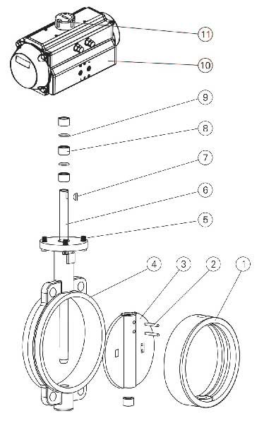 D671F、D671X氣動(dòng)對(duì)夾式軟密封蝶閥主要零件材質(zhì)表