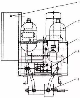 (1.電氣控制箱 2.蓄能器 3.液壓泵站 4.控制閥組 5.快速油缸)