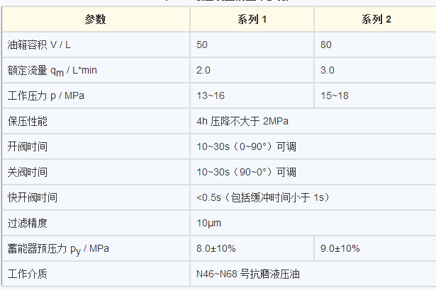 根據(jù)快關(guān)蝶閥的要求和計算,液壓驅(qū)動裝置的基本參數(shù)確定如下表。