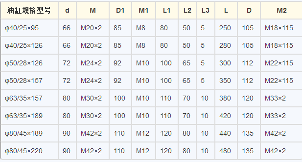 快速油缸的參數(shù)