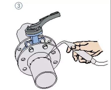 6、待焊口冷后再安裝閥門。保證閥門在法蘭中有足夠活動空間以防止閥門被損壞,并保證閥板有一定的開度;