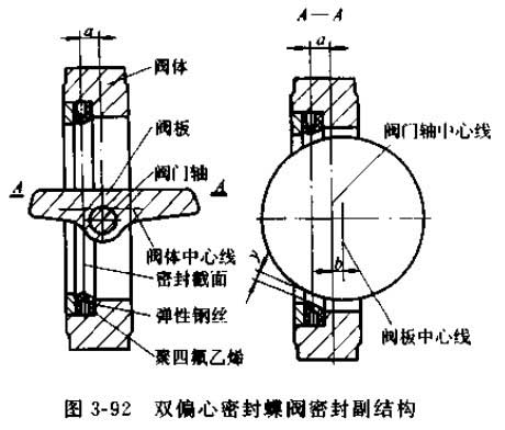 圖3-92所示為一種典型的雙偏心密封蝶閥密封副結(jié)構(gòu)。該類蝶閥通常被稱為高性能蝶閥。
