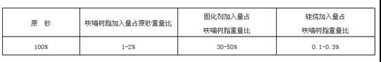 原砂+固化劑(對(duì)甲苯磺酸水溶液)-(120~180S)-樹(shù)脂+硅烷-(60~90S)-出砂