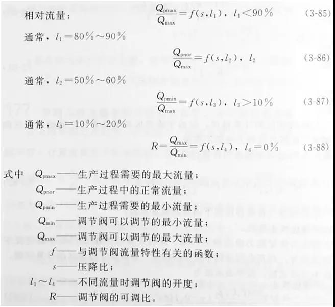 如果已知正常流量Qpnor,則正常流量時調(diào)節(jié)閥開充l2=50%~60%,代入(3-89)得到