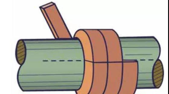 絕不能用繞線圈的方式將盤根材料裝滿填料函,而是用專用切割工具切割盤根編織材料,并制成獨(dú)立的盤根環(huán),切口呈45º(斜接)(見圖6),這樣可以利用載荷獲得更好的端面結(jié)合。