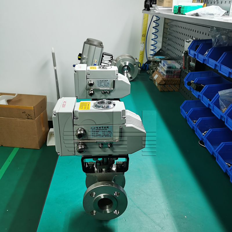 電動(dòng)V型調(diào)節(jié)球閥是新開發(fā)的硬密封、四氟密封調(diào)節(jié)球閥。它采用板簧加載的可動(dòng)閥座結(jié)構(gòu),閥座與球體不會(huì)產(chǎn)生卡阻或脫離等問題,密封可靠,使用長。V型球閥閥芯設(shè)計(jì)成帶有特殊開關(guān)的V型缺口,流通能力大,壓力損失小,并具有的截流特性和控制功能,流量特性為近似等百分比。啟閉件采用V型球缺結(jié)構(gòu),解決了閥腔易沉積介質(zhì)的問題。