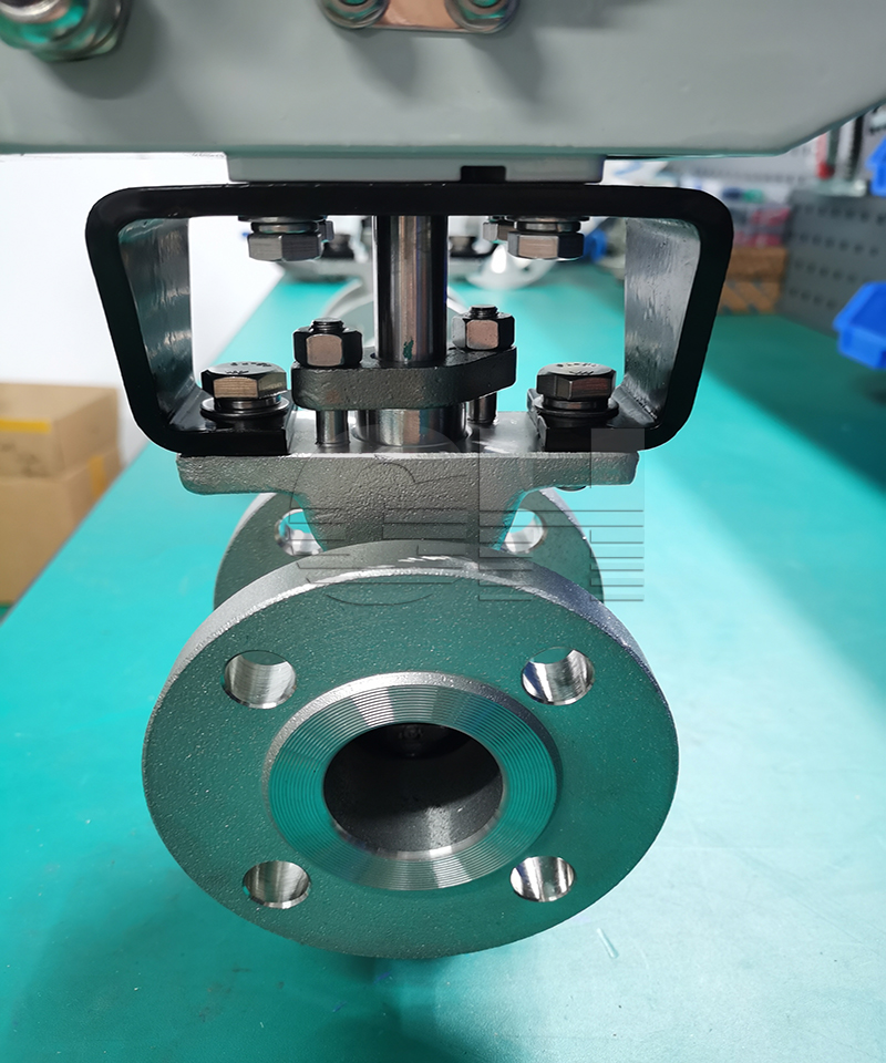 電動(dòng)不銹鋼V型調(diào)節(jié)球閥是由球閥和執(zhí)行機(jī)構(gòu)兩部分組成。在控制信號(hào)作用下球式閥芯由與之所連接的電動(dòng)執(zhí)行機(jī)構(gòu)的出軸所驅(qū)動(dòng)作0~90°旋轉(zhuǎn),從而改變流通面積,達(dá)到調(diào)節(jié)流量的目的,球閥與執(zhí)行機(jī)構(gòu)之間采用支架固定。 正、反作用方式變換較為方便,只須將閥芯初始位置旋轉(zhuǎn)90°,既能實(shí)現(xiàn)作用方式的轉(zhuǎn)換。