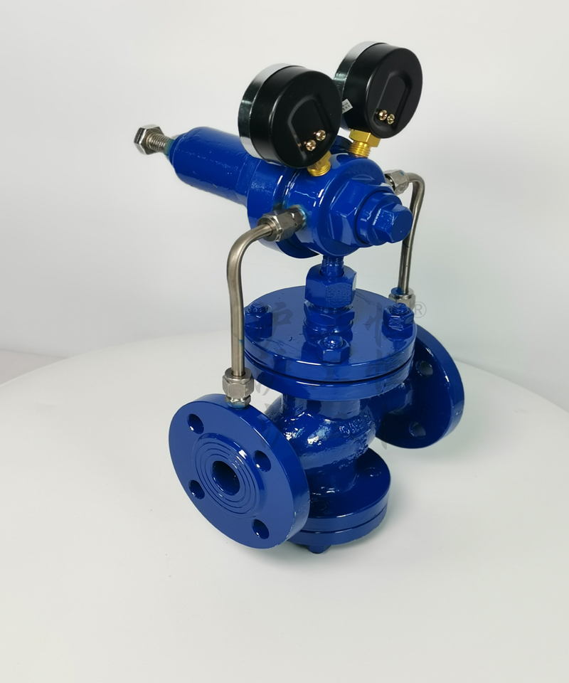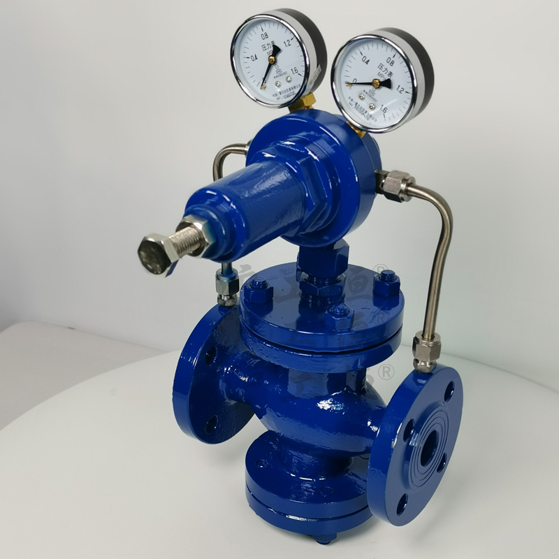 YK43X/F屬于先導活塞式減壓閥。由主閥和導閥兩部分組成。主閥主要由閥座、主閥盤、活塞、彈簧等零件組成。導閥主要由閥座、閥瓣、膜片、彈簧、調(diào)節(jié)彈簧等零件組成。通過調(diào)節(jié)調(diào)節(jié)彈簧壓力設定出口壓力、利用膜片傳感出口壓力變化,通過導閥啟閉驅(qū)動活塞調(diào)節(jié)主閥節(jié)流部位過流面積的大小,實現(xiàn)減壓穩(wěn)壓功能。主要用于氣體管路,如空氣、氮氣、氧氣、氫氣、液化氣等氣體。