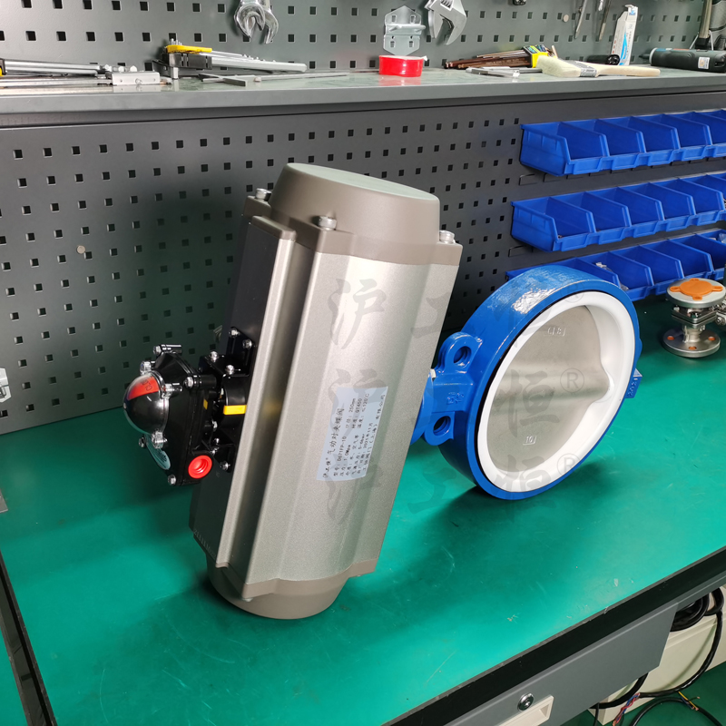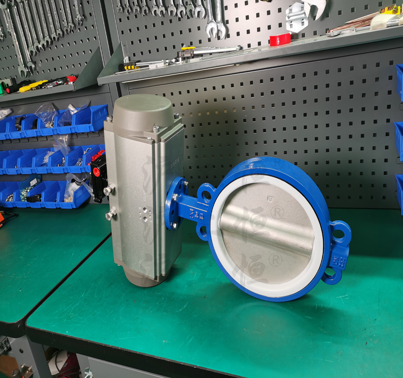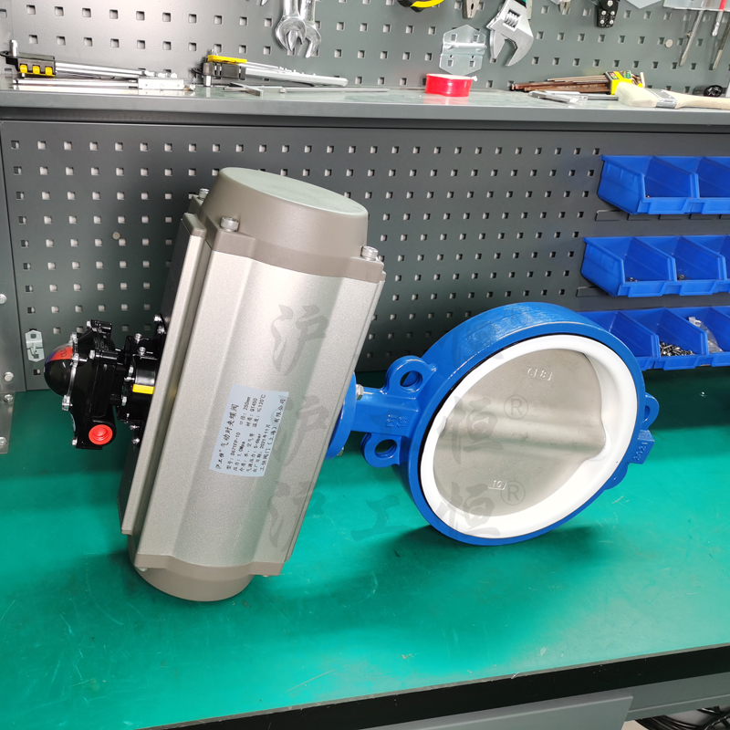 氣動(dòng)對(duì)夾式四氟蝶閥D671F-16Q-DN250