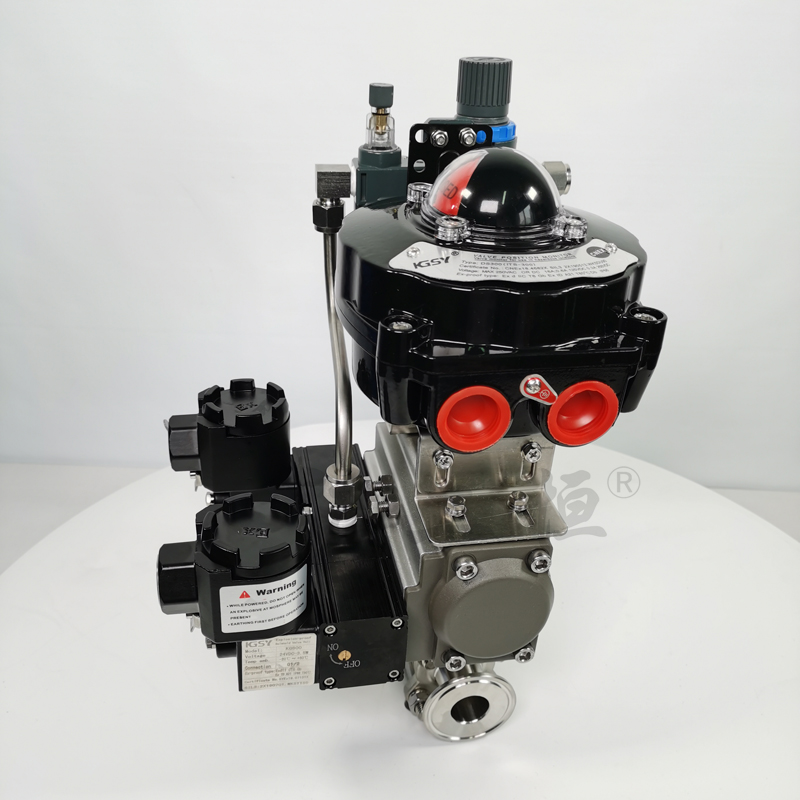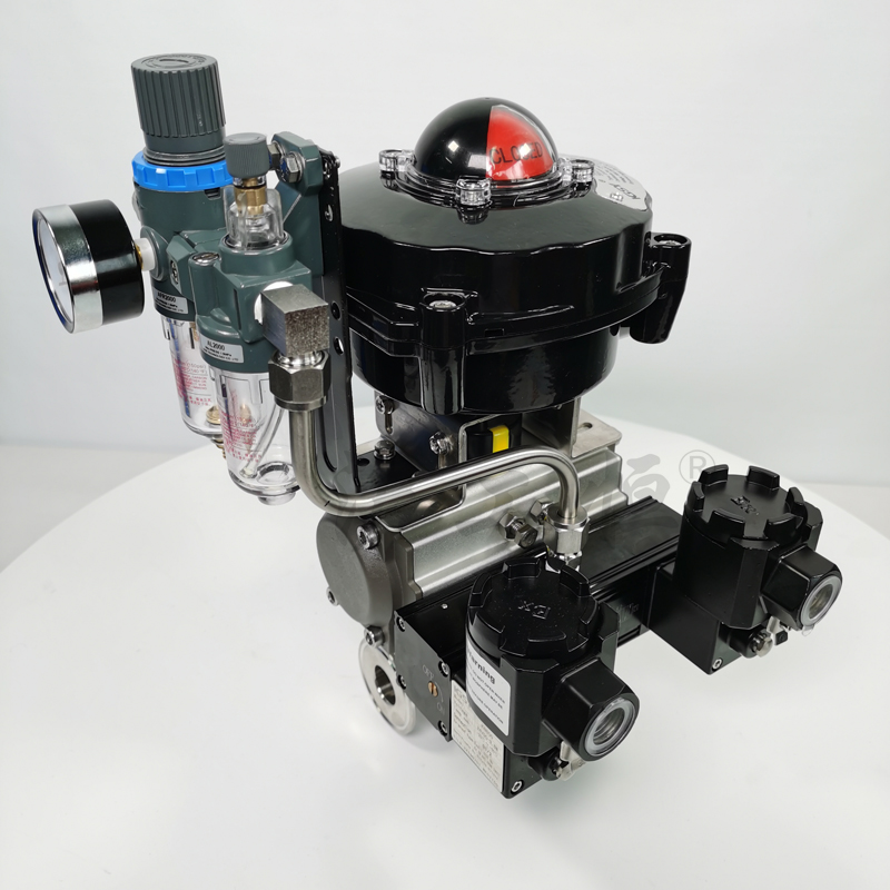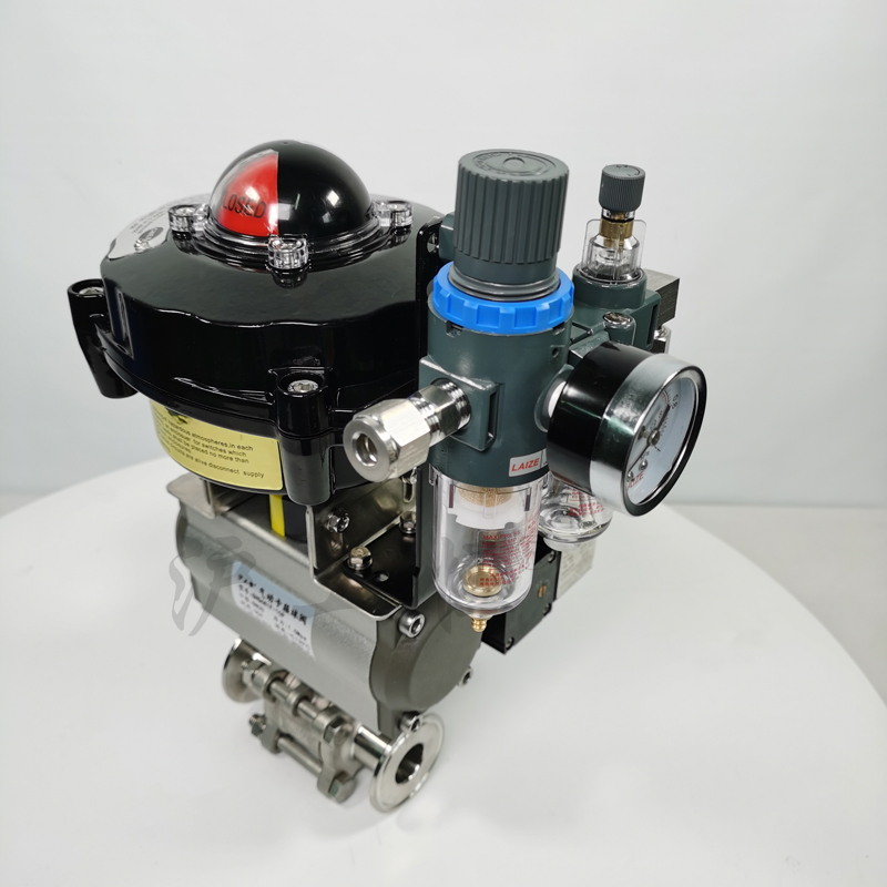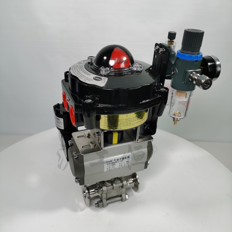 三聯(lián)件:可對(duì)氣源穩(wěn)壓、過(guò)濾、氣缸加潤(rùn)滑油。手輪機(jī)構(gòu):轉(zhuǎn)動(dòng)手輪機(jī)構(gòu),可實(shí)現(xiàn)手動(dòng)開(kāi)、關(guān)閥。