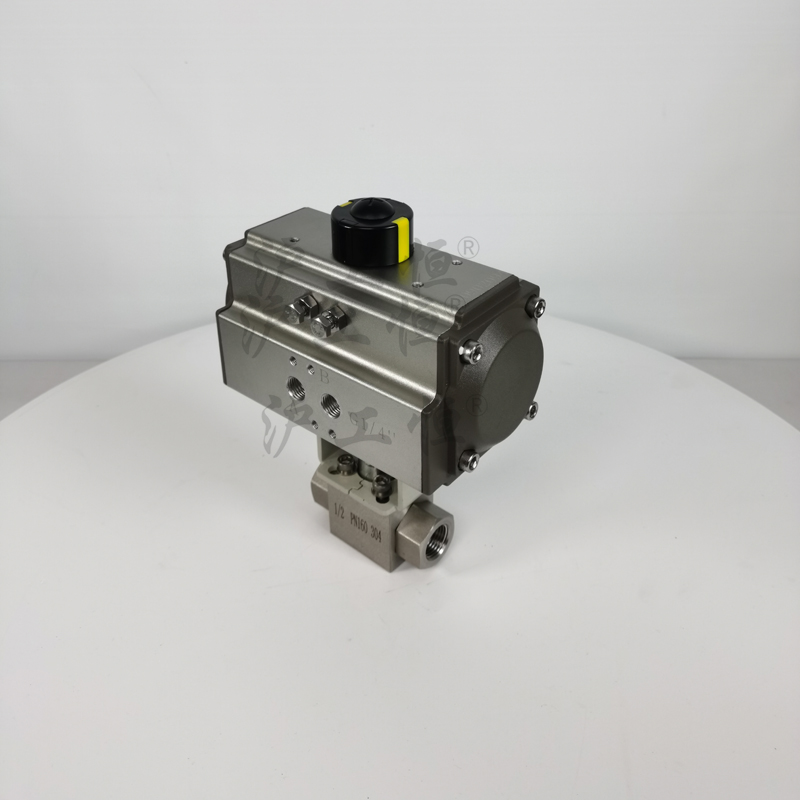 氣動(dòng)高壓球閥以壓縮空氣為動(dòng)力,閥桿帶動(dòng)閥芯在閥體內(nèi)轉(zhuǎn)動(dòng)90°,可實(shí)現(xiàn)全開-全關(guān)動(dòng)作。氣動(dòng)高壓球閥由氣動(dòng)活塞式執(zhí)行機(jī)構(gòu)和高壓球閥組成,可配以閥門定位器輸入控制信號(hào)(4-20mADC或1-5VDC)氣源即可控制運(yùn)轉(zhuǎn)。亦可配行程限位開關(guān)、電磁閥、減壓閥及0.4-0.7MPa氣源可實(shí)現(xiàn)開關(guān)操作,并送出二對(duì)無源觸點(diǎn)信號(hào)指示閥門的開關(guān)。 氣動(dòng)高壓球閥廣泛應(yīng)用在石油、化工、輕工、高壓設(shè)備、制藥、造紙等工業(yè)自動(dòng)控制系統(tǒng)中,作遠(yuǎn)距離集中控制或就地控制。