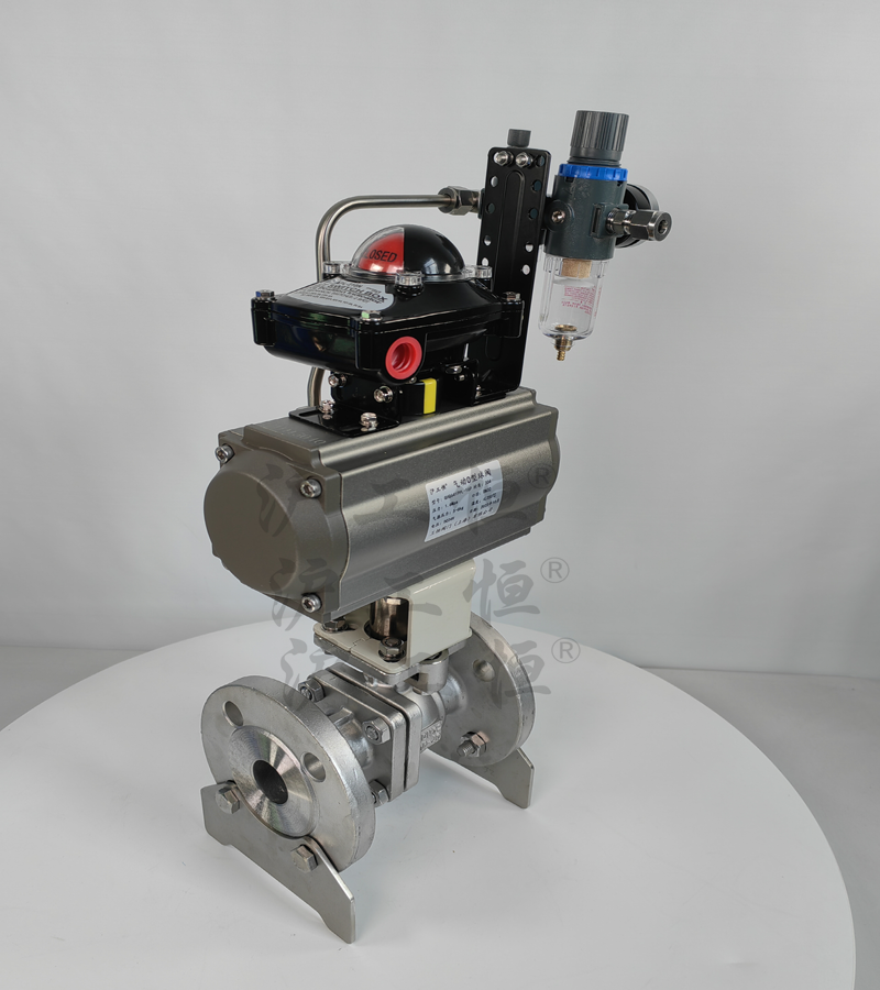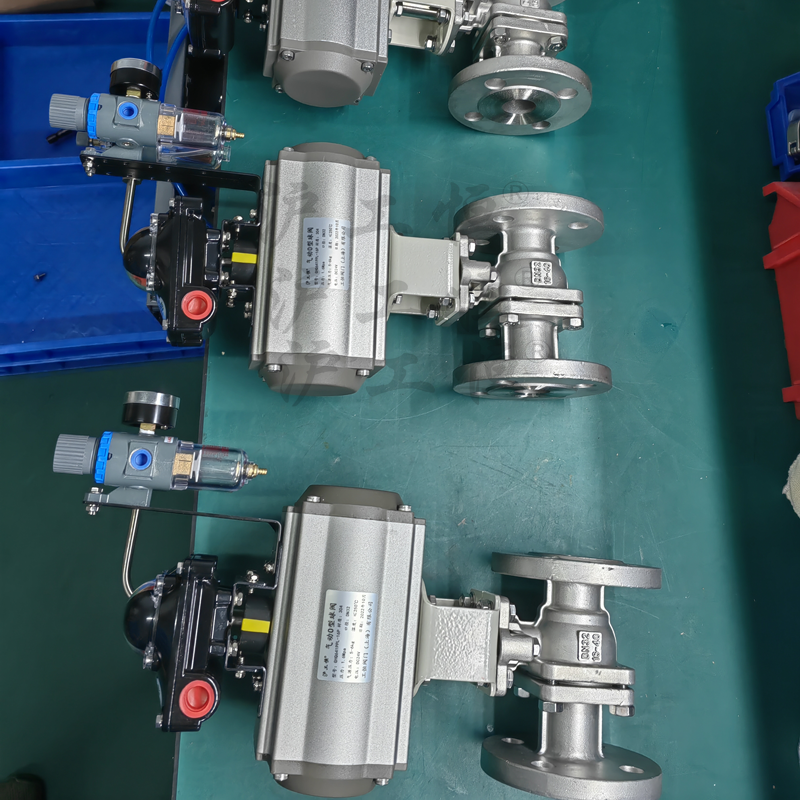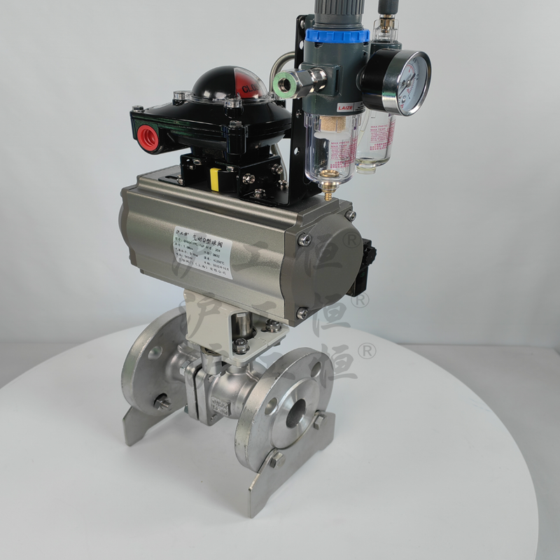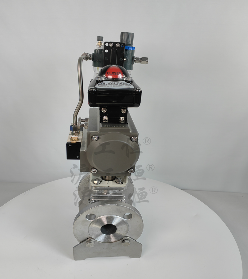 氣動法蘭球閥是由GT型、AT型氣動活塞式氣缸和呈90°旋轉(zhuǎn)的球閥直接組合而成。當(dāng)球旋轉(zhuǎn)90度時,在進(jìn)、出口處應(yīng)全部呈現(xiàn)球面,從而截斷流動,反之既呈現(xiàn)通孔,使介質(zhì)通過。全通徑的球體內(nèi)腔為介質(zhì)提供了阻力很小、直通的流道。氣動執(zhí)行器快速旋轉(zhuǎn)90度就能使球閥瞬間關(guān)閉嚴(yán)密,執(zhí)行器與閥體的直接連接減少了發(fā)生故障的機率。法蘭連接的管路能保持良好密封性能,便于維修更換,便于管路的封閉。