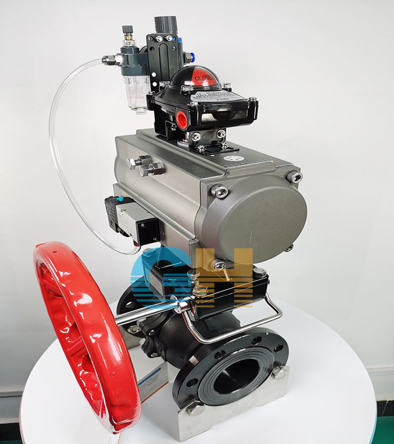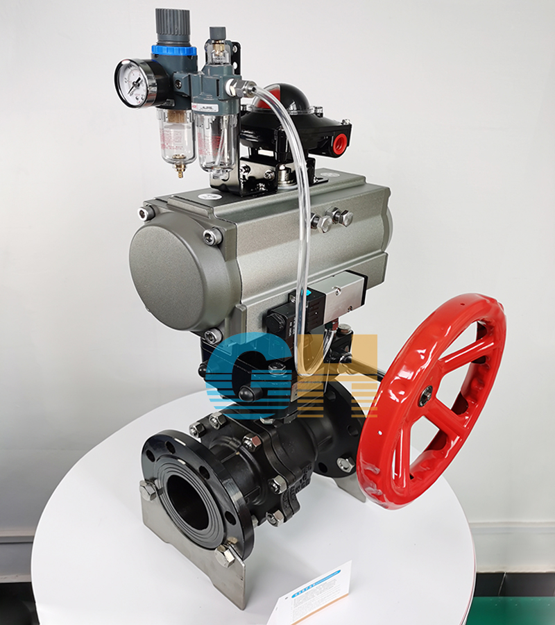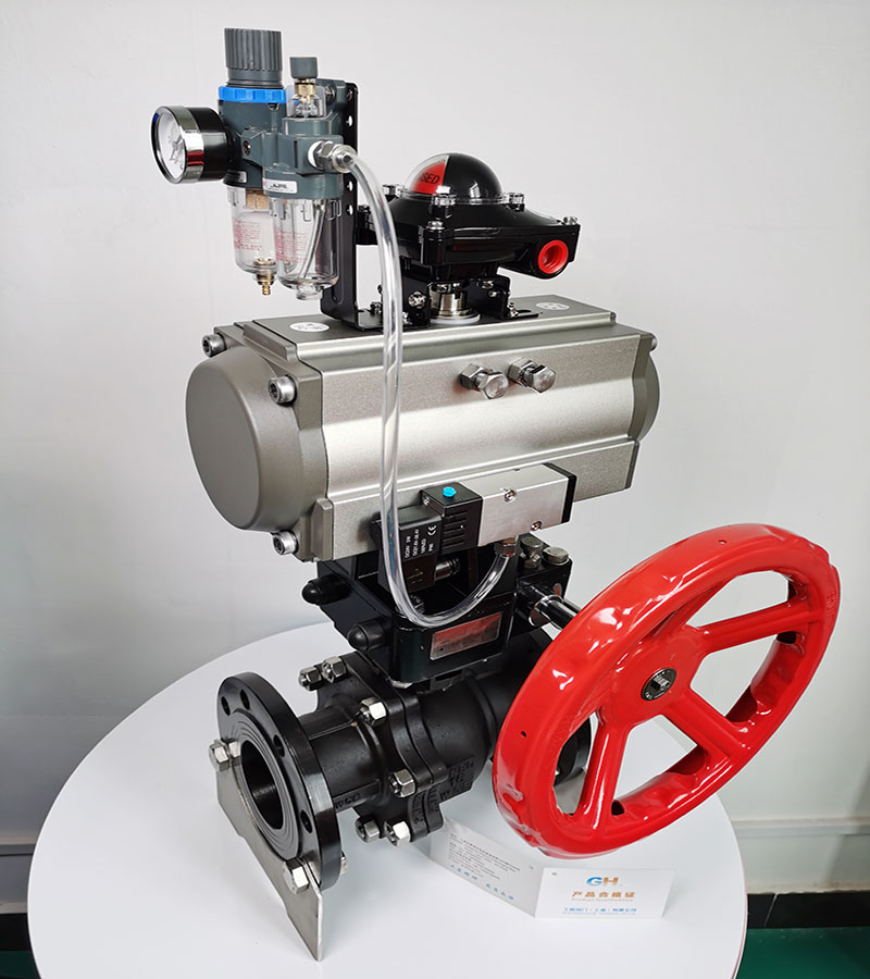 4、如果氣動管路球閥采取氣動、電動等執(zhí)行器時(shí),按說明書完成氣源、電源的安裝。
