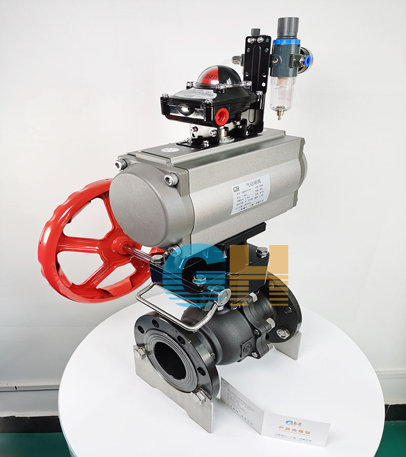 Q641F-16C法蘭式碳鋼氣動球閥-帶手動機(jī)構(gòu)