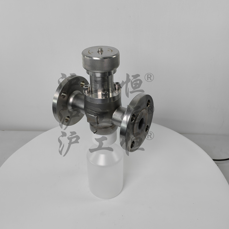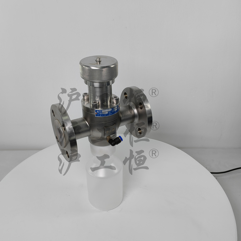 GHZSQYF46襯氟取樣閥解決了現(xiàn)有取樣閥的復(fù)雜結(jié)構(gòu),保溫帶吹掃口取樣閥主要有閥體、保溫殼、閥芯、閥桿、閥座、取樣瓶組成,取樣瓶為可拆卸設(shè)計(jì),試樣進(jìn)入取樣瓶?jī)?nèi),可將取樣瓶密封,避免污染試樣,流道無(wú)流阻設(shè)計(jì),不影響流量,閥體保溫可接入蒸汽或?qū)嵊捅兀杀苊饨橘|(zhì)因低溫凝固,閥桿通過(guò)手輪、電動(dòng)執(zhí)行機(jī)構(gòu)、氣動(dòng)執(zhí)行機(jī)構(gòu)旋轉(zhuǎn)帶動(dòng)閥桿及閥芯,閥芯上下提拉,可精確控制流量,實(shí)現(xiàn)試樣進(jìn)入取樣瓶?jī)?nèi),取樣瓶可選透明和避光兩種,本取樣閥廣泛應(yīng)用在制藥、化工、食品行業(yè)。