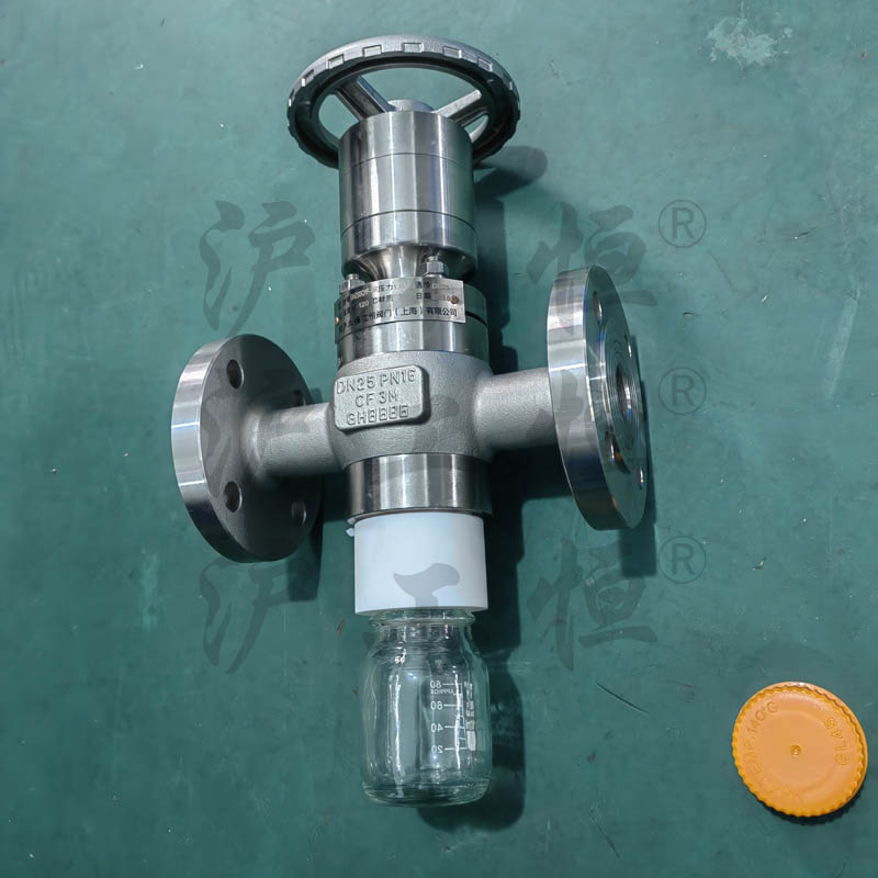 無滯留取樣閥解決了現(xiàn)有取樣閥的復(fù)雜結(jié)構(gòu),無滯留取樣閥主要有閥體、閥芯、閥桿、閥座、取樣瓶組成,取樣瓶為可拆卸設(shè)計,試樣通過取樣口進入取樣瓶內(nèi),避免污染試樣,流道無流阻、無滯留設(shè)計,不影響流量,閥桿通過手輪、電動執(zhí)行機構(gòu)、氣動執(zhí)行機構(gòu)旋轉(zhuǎn)帶動閥桿及閥芯,閥芯上下提拉,可精確控制流量,實現(xiàn)試樣進入取樣瓶內(nèi),取樣瓶可選透明和避光兩種,本取樣閥廣泛應(yīng)用在制藥、化工、食品行業(yè)。