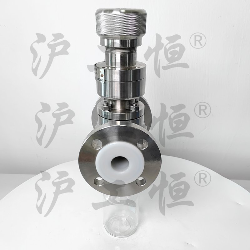 GHZSQYF46-16P不銹鋼襯氟取樣閥,GHZSQYF46-16P不銹鋼襯氟取樣閥與介質(zhì)接觸部份全襯氟,可用在腐蝕工況上,內(nèi)襯材質(zhì)有F40、F46、PTFE、PFA,高溫工況可采用內(nèi)襯PFA,GHZSQYF46-16P不銹鋼襯氟取樣閥主要有襯氟閥體、襯氟閥芯、襯氟閥蓋、襯氟閥桿、襯氟閥座、取樣瓶組成,取樣瓶為可拆卸設(shè)計(jì),試樣進(jìn)入取樣瓶?jī)?nèi),配套的瓶蓋可將取樣瓶密封,避免污染試樣,取樣閥流道無(wú)滯留、無(wú)流阻設(shè)計(jì),不影響流量,閥桿通過(guò)手輪旋轉(zhuǎn)帶動(dòng)閥桿及閥芯,閥芯上下提拉,可精確控制流量,精確控制取樣量,使試樣進(jìn)入取樣瓶?jī)?nèi),取樣瓶可選透明和避光兩種,本取樣閥廣泛應(yīng)用在制藥、化工、食品行業(yè)。