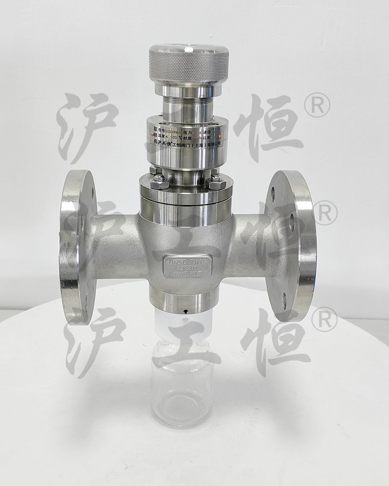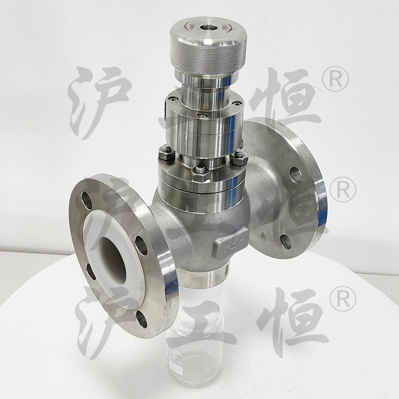 GHZSQYF46-16P不銹鋼襯氟取樣閥,GHZSQYF46-16P不銹鋼襯氟取樣閥與介質(zhì)接觸部份全襯氟,可用在腐蝕工況上,內(nèi)襯材質(zhì)有F40、F46、PTFE、PFA,高溫工況可采用內(nèi)襯PFA,GHZSQYF46-16P不銹鋼襯氟取樣閥主要有襯氟閥體、襯氟閥芯、襯氟閥蓋、襯氟閥桿、襯氟閥座、取樣瓶組成,取樣瓶為可拆卸設(shè)計(jì),試樣進(jìn)入取樣瓶?jī)?nèi),配套的瓶蓋可將取樣瓶密封,避免污染試樣,取樣閥流道無滯留、無流阻設(shè)計(jì),不影響流量,閥桿通過手輪旋轉(zhuǎn)帶動(dòng)閥桿及閥芯,閥芯上下提拉,可精確控制流量,精確控制取樣量,使試樣進(jìn)入取樣瓶?jī)?nèi),取樣瓶可選透明和避光兩種,本取樣閥廣泛應(yīng)用在制藥、化工、食品行業(yè)。