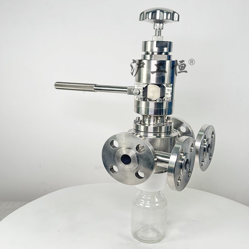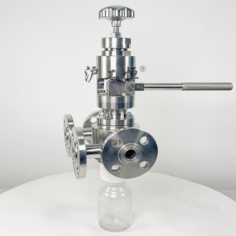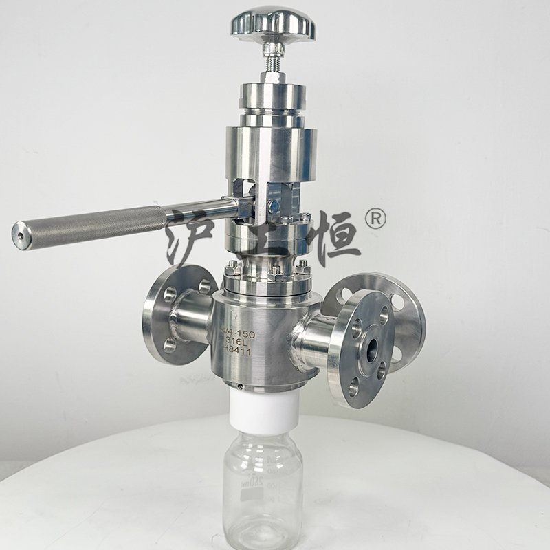 壓桿式取樣,取樣介質真實, GHZXQYF-300LB美標高溫壓桿式取樣主要有閥體、閥芯、閥桿、閥座、高溫填料、排氣口,取樣瓶組成,取樣瓶為可拆卸設計,試樣進入取樣瓶內(nèi),配套的瓶蓋可將取樣瓶密封,避免污染試樣,取樣閥流道無滯留、無流阻設計,不影響流量,閥桿通過手輪旋轉帶動閥桿及閥芯,閥芯上下提拉,可精確控制流量,精確控制取樣量,使試樣進入取樣瓶內(nèi),取樣瓶可選透明和避光兩種,本取樣閥廣泛應用在制藥、化工、食品行業(yè)。