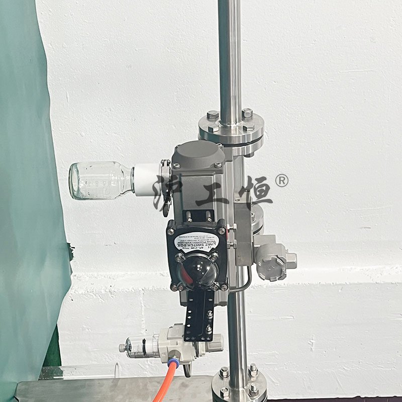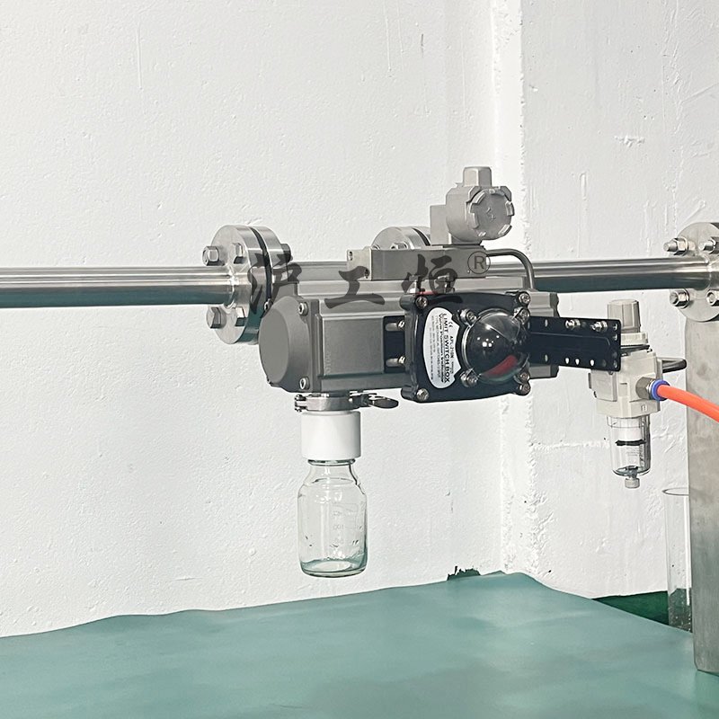 氣動定量取樣閥-配不銹鋼電磁閥,解決了現(xiàn)有取樣閥的復雜結(jié)構(gòu),取樣瓶采用PFA材質(zhì),可取樣為腐蝕性介質(zhì),氣動定量取樣閥-配不銹鋼電磁閥主要有閥體、閥芯、閥桿、閥座、密閉針、帶膜片取樣瓶組成,取樣瓶為可拆卸設計,試樣從入料針進入取樣瓶內(nèi),并通過排氣針排出壓力,使取樣瓶保持在常壓狀態(tài),取樣瓶品裝有橡膠膜可將取樣瓶密封,避免污染試樣,流道無流阻設計,不影響流量,閥桿通過手柄、電動執(zhí)行機構(gòu)、氣動執(zhí)行機構(gòu)旋轉(zhuǎn)帶動閥桿及閥芯,閥芯上下提拉,可精確控制流量,實現(xiàn)試樣進入取樣瓶內(nèi),取樣瓶可選透明和避光兩種,本取樣閥廣泛應用在制藥、化工、食品行業(yè)。