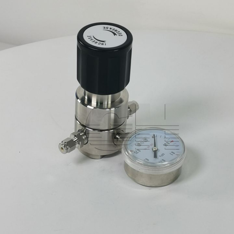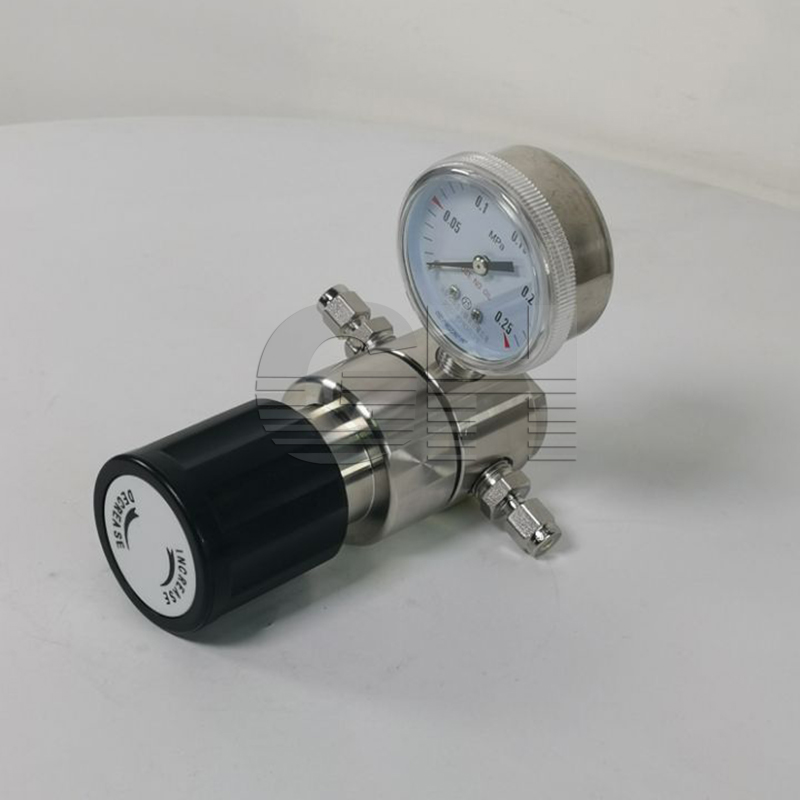 不銹鋼高壓減壓器,高純氣體減壓器工作原理如下:高壓的介質在通過一個小孔充到一個相對比較大的空腔里來實現(xiàn)減壓,實際上就是靠截流來減壓,在膜片或活塞的兩面一面是出口腔,另一面是人為給的壓力,并且控制小孔大小的閥桿和膜片(活塞)相連,這樣,我們只要給一個固定的壓力,那么出口腔的壓力就會一直等于這個固定壓力,這個認為給定的壓力可以有彈簧或氣源或液壓源來提供。不銹鋼高壓減壓器,高純氣體減壓器為單級式膜片結構,不銹鋼膜片壓力傳輸,輸出力穩(wěn)定,特別適用于純凈氣體、腐蝕性氣體和非腐蝕性氣體。