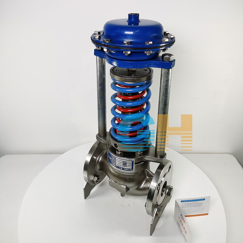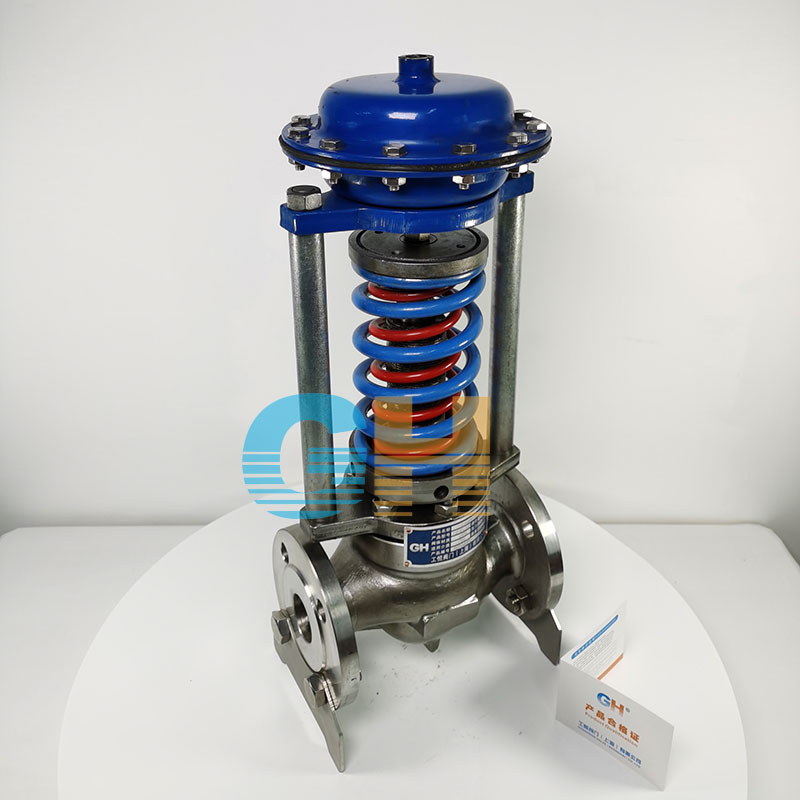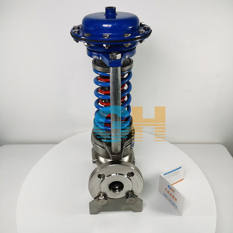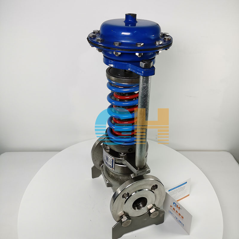 如閥前壓力增加,作用于膜片上的力增加,壓縮彈簧,帶動(dòng)閥芯,使閥門(mén)開(kāi)度增大,直至閥前壓力下降至設(shè)定值為止。同理,如閥前壓力降低,作用在膜片上的力減小,由于彈簧的反作用力,帶動(dòng)閥芯,使閥門(mén)的開(kāi)度加小,直至閥前壓力上升至設(shè)定值為止。若閥前壓力小于設(shè)定值則該閥一直是關(guān)閉的。