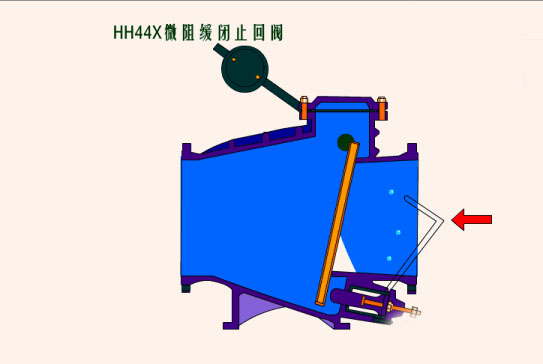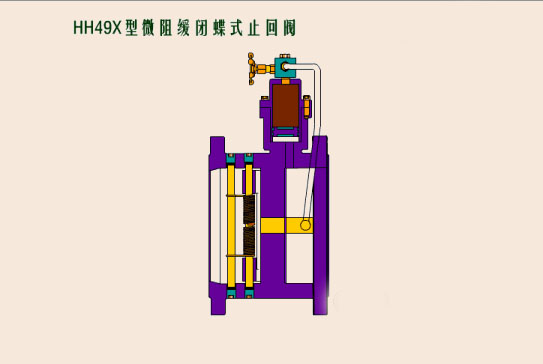 在閥門用于止排水管道,安裝在水泵出口處,用來防止介質倒流或破壞性水錘,當水泵開始工作或防止壓力開始升高時。閥瓣在進口壓力作用下打開,介質大量通過,同時介質進入管壁氣缸內,使活塞運動到工作位置,當水泵停止或進口壓力下降時,閥瓣在回水壓力作用下在先快速關閉百分之九十,由于活塞處于工作位置,剩百分之十左右的關閉形成,由活塞組織緩慢關閉,從而了快速關閉所形成的水錘。
