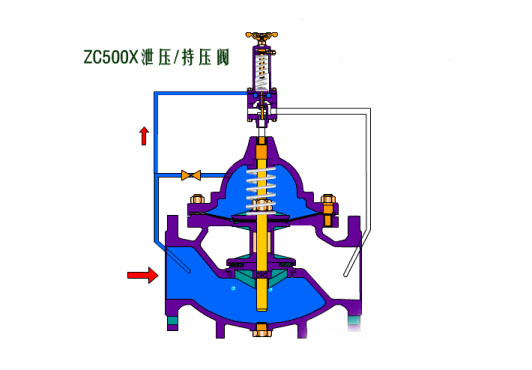 該閥安裝在管道中,主要靠介質本身的保持閥后的壓力和流量在規(guī)定的范圍內。當壓力低于或高于在導閥設定的規(guī)定值時,導閥會自動打開或關閉,釋放或切斷主閥控制室內的水壓,從而控制主閥瓣打開或關閉,保證下游用水在正常的壓力范圍內。