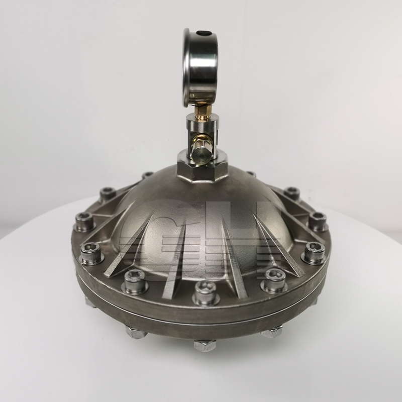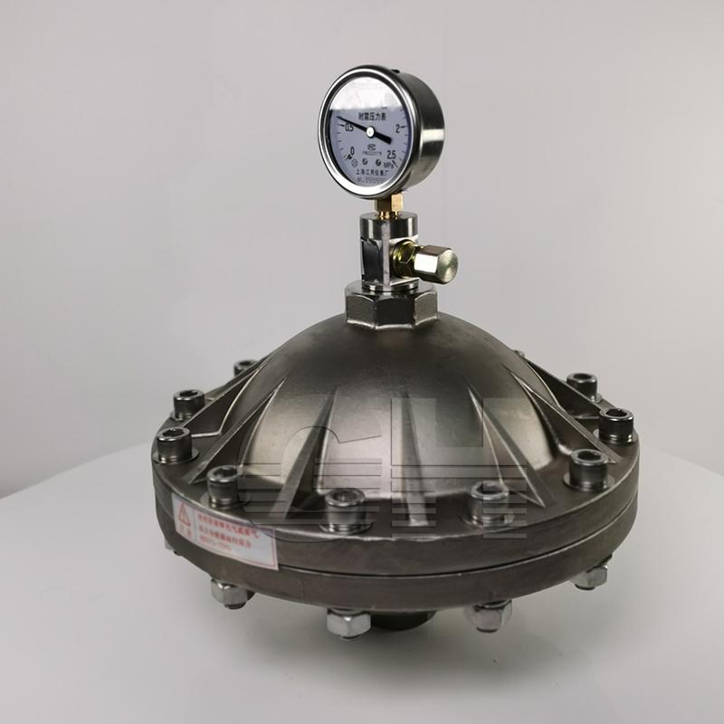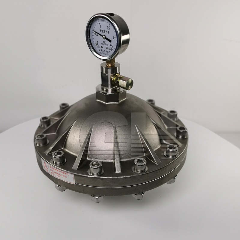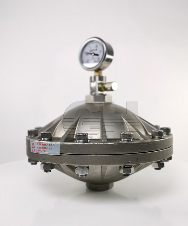 膜片式脈沖阻尼器分為上下殼體,中間由聚四氟乙烯&橡膠復(fù)合膜片分隔,是常用的脈沖阻尼器。 的***點(diǎn)就是隔膜將預(yù)充氣體和管路中的液體分開(kāi),方便維護(hù),在合適的選型、充壓條件下,能夠減少 大多數(shù)的脈沖。我公司生產(chǎn)的膜片式脈沖阻尼器PVC材質(zhì)的 耐壓為1.0MPa,不銹鋼材質(zhì) 耐壓一般為2.5MPa,耐壓5.0MPa。
